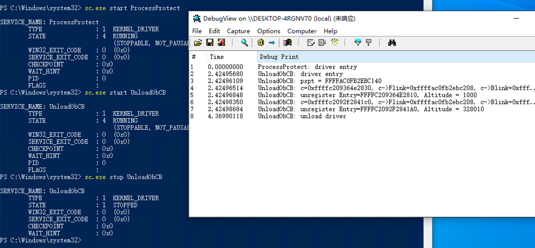 KdPrintEx((DPFLTR_IHVDRIVER_ID, DPFLTR_INFO_LEVEL, "ProcessProtect: ObRegisterCallbcks failed status 0x%x\n", Status));